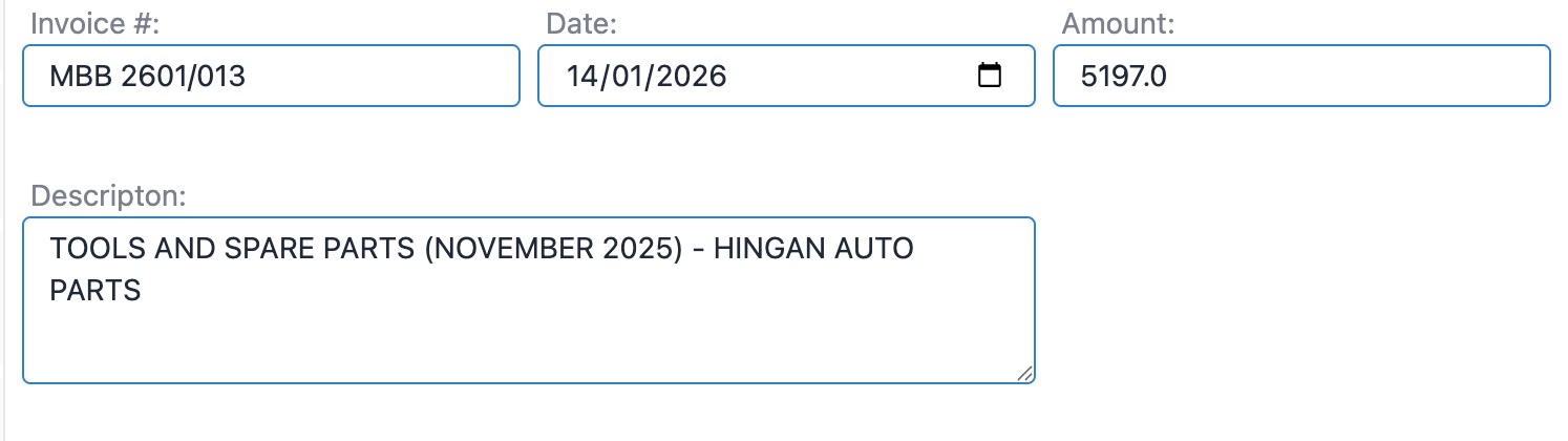 AI will also extract other data such as Invoice number, date, amount and fill in the descripton with any hand written words (except signature) on the bill.